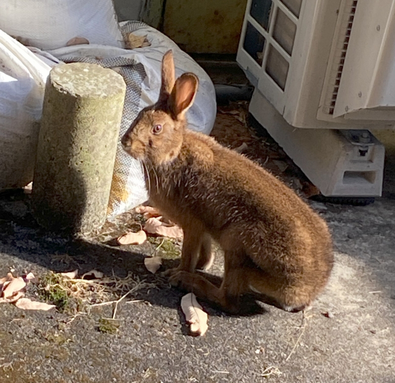 敷地で見つけた野生のウサギ