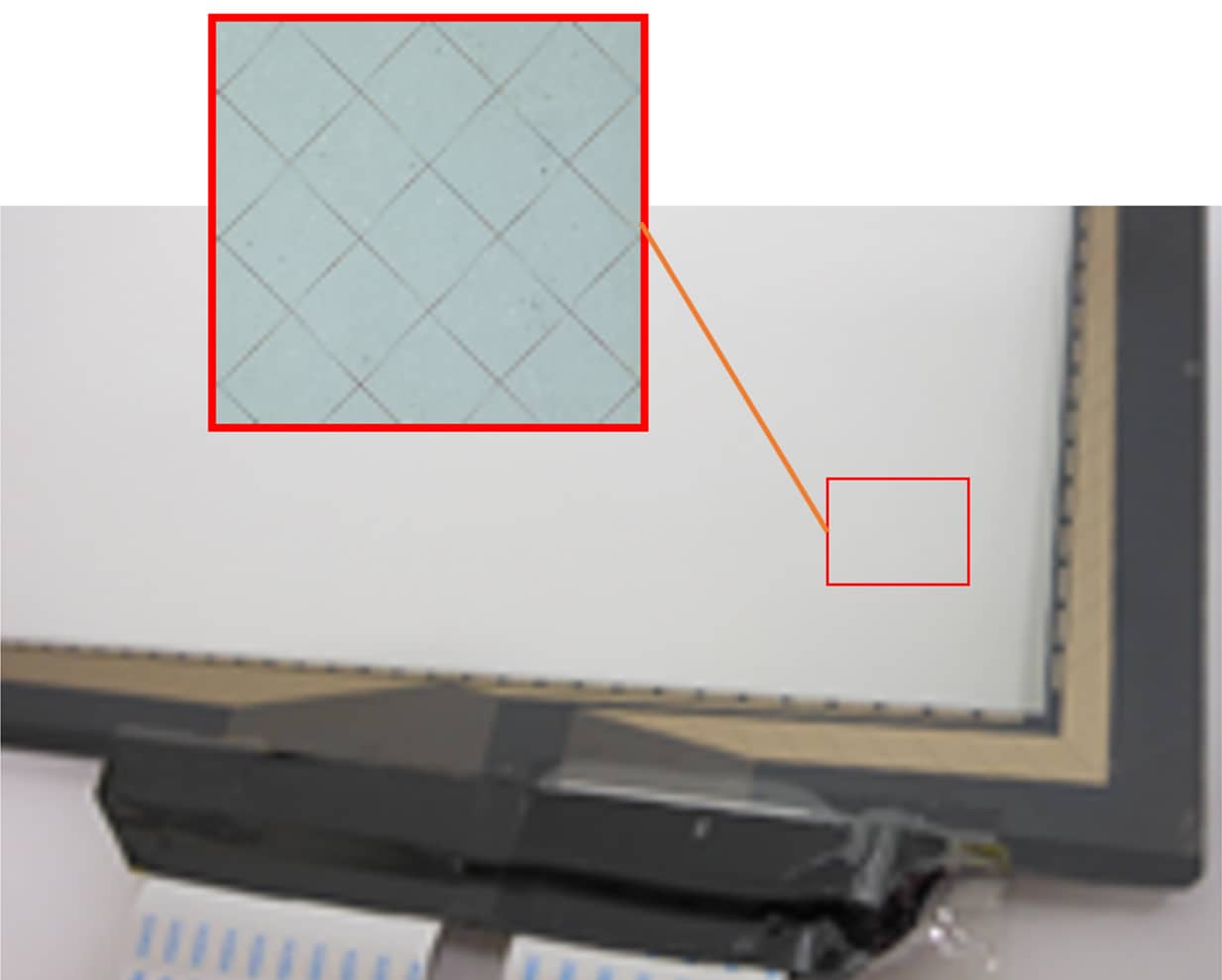 这是一种以几微米宽的网格状金属来代替以往的ITO, 用作触摸屏输入检测等的透明导电薄膜的技术。